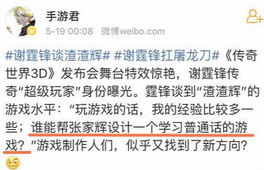 谢霆锋其实是作为《传奇世界3D》的超级玩家受邀登场的。采访的时候,霆锋说他以前就很喜欢玩传奇,所以这次当厂商找到他的时候,一向不怎么接游戏代言的霆锋也欣然接受了,还很配合地在发布会扛起了屠龙刀。对了,介款游戏将在5月31日开启不删档测试,谢霆锋说他会亲自带队攻沙!