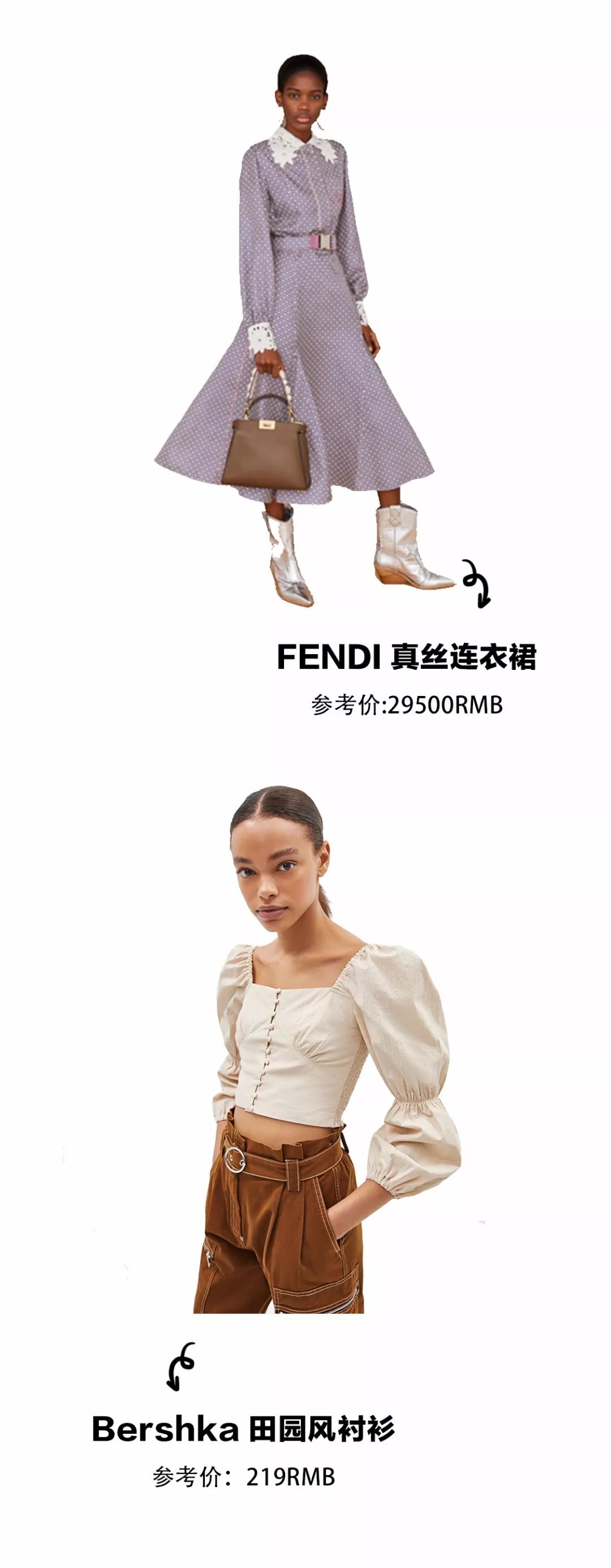 李圣经小姐姐选择的这种千鸟格图案和宫廷领也是绝配哦!带着一丝田园的小清新,直男斩首选哟!