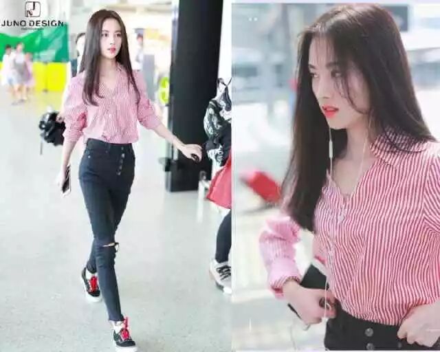 机场私服同样不差,甚至鞠婧祎的这身穿搭还有十分好的借鉴性,上身穿着条纹衫,卷起袖子显得俏皮又可爱,下搭一款高腰紧身裤,露出脚踝,高腰的裤子更是自带长腿效果,配上脚踩的休闲板鞋,整个造型简洁又朴素,色彩方面也拿捏的恰到好处,看到这里,我想没有网友会调侃鞠婧祎个子不高了吧!