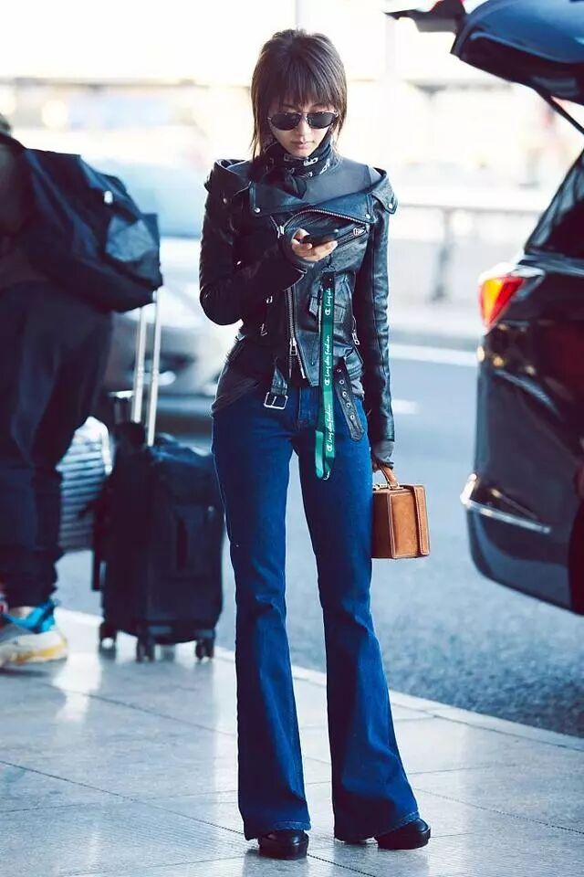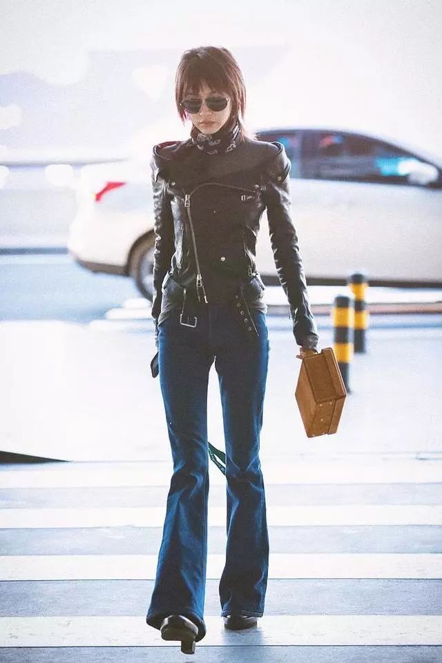近期,小妖精王子文现身机场,身穿黑色皮衣搭配微喇叭牛仔裤,脚踩黑色厚底鞋,不得不说王子文真会穿啊,这身衣服穿出去说170都有人信啊!