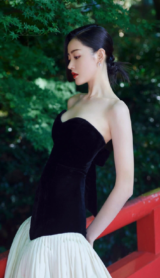 张天爱这一件白色蝴蝶结的礼服,可以说在款式上非常的新颖,而且自带一种甜美感觉,在款式上没有过多复杂的设计利用这种有质感的面料给人带来一种非常高级的感觉。