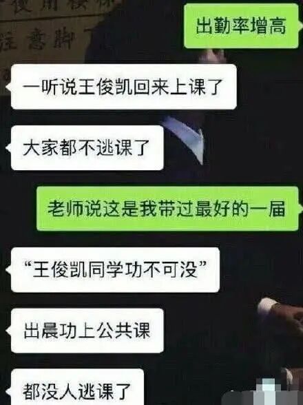 接着还有善良的路人网友晒出了北电同学的聊天记录,表示王俊凯只要一来上课,那这节课的出勤率就出奇地高,不仅自己积极地出勤还带动了整个班级的同学,就连老师都罕见地表示“这是我带过最好的一届”,说起来王俊凯真的是功不可没呢。