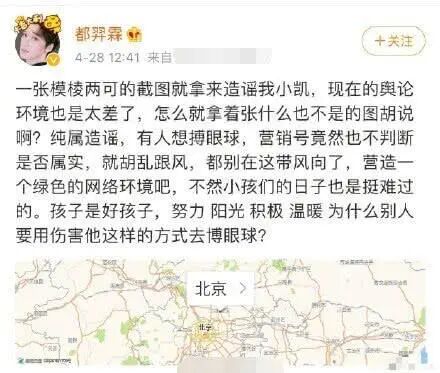 许多网友都议论纷纷,随后一位北京电影学院表演系任讲师的都羿霖在自己的微博当中主动发文为王俊凯澄清,直言“一张模棱两可的截图就拿来造谣我小凯”,这说话的语气看来也是非常宠爱这位明星同学的,还说的孩子是好孩子,努力、阳光、积极、温暖,这些词语都是非常正能量的。