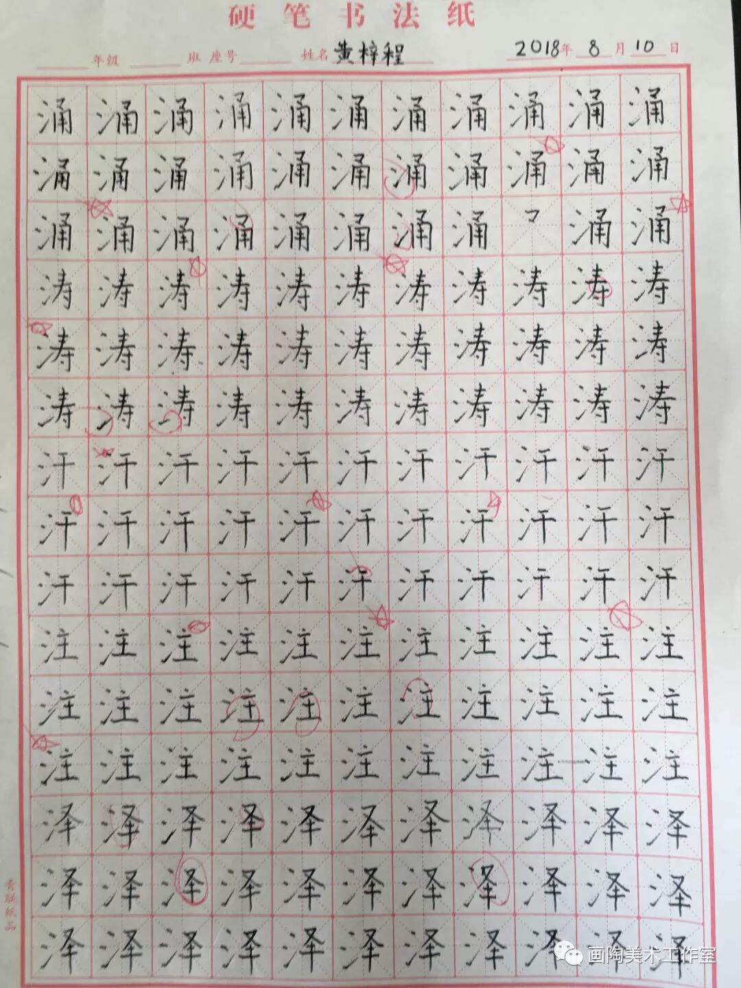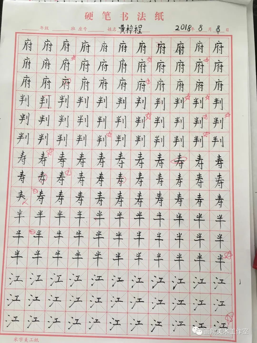 黄梓程,写字就像“上刑”,浑身难受,但是结果真的很好,他进步很大。同时表扬下他的妈妈,太有天赋了,一节课的横写的真心好。