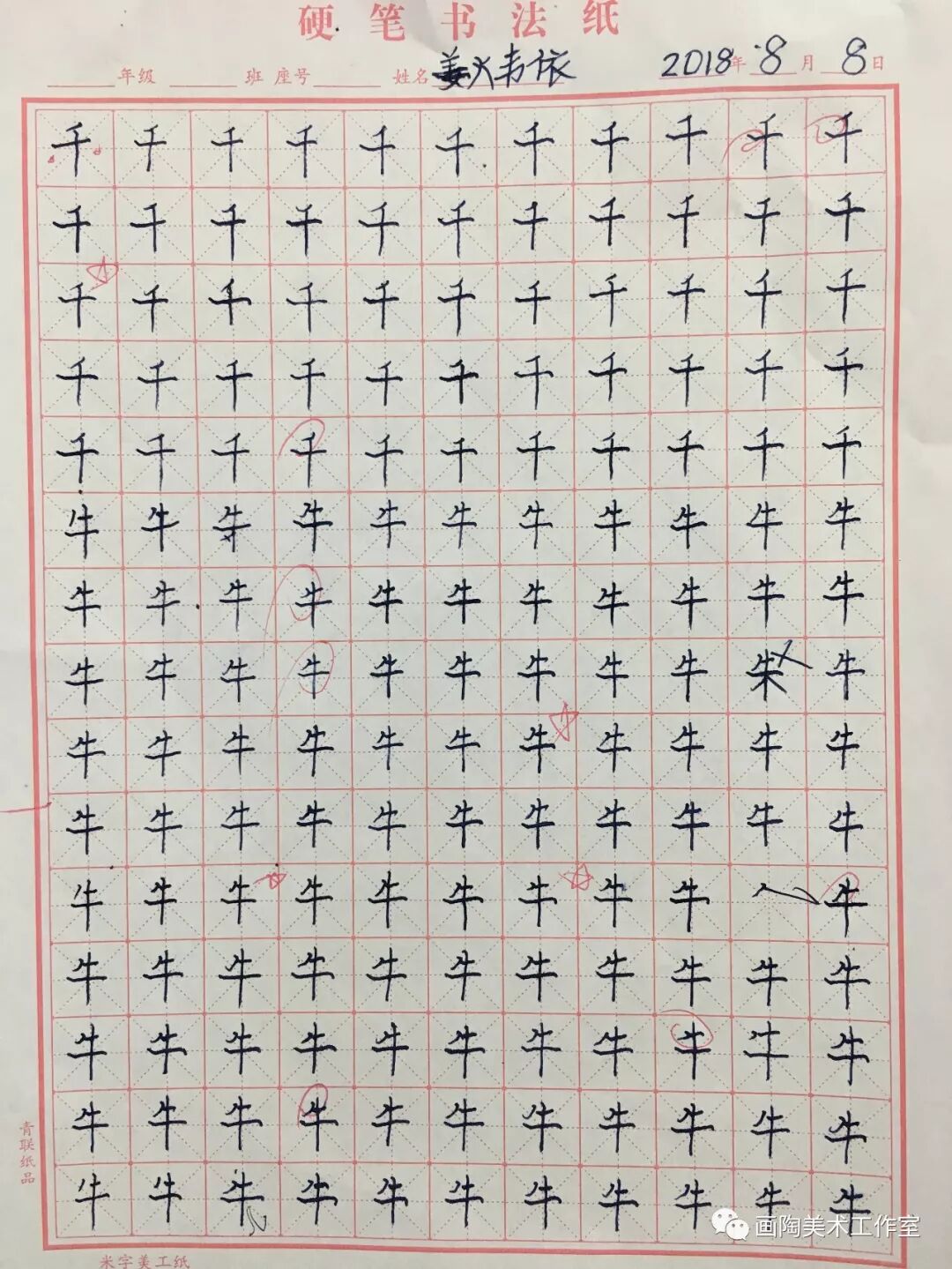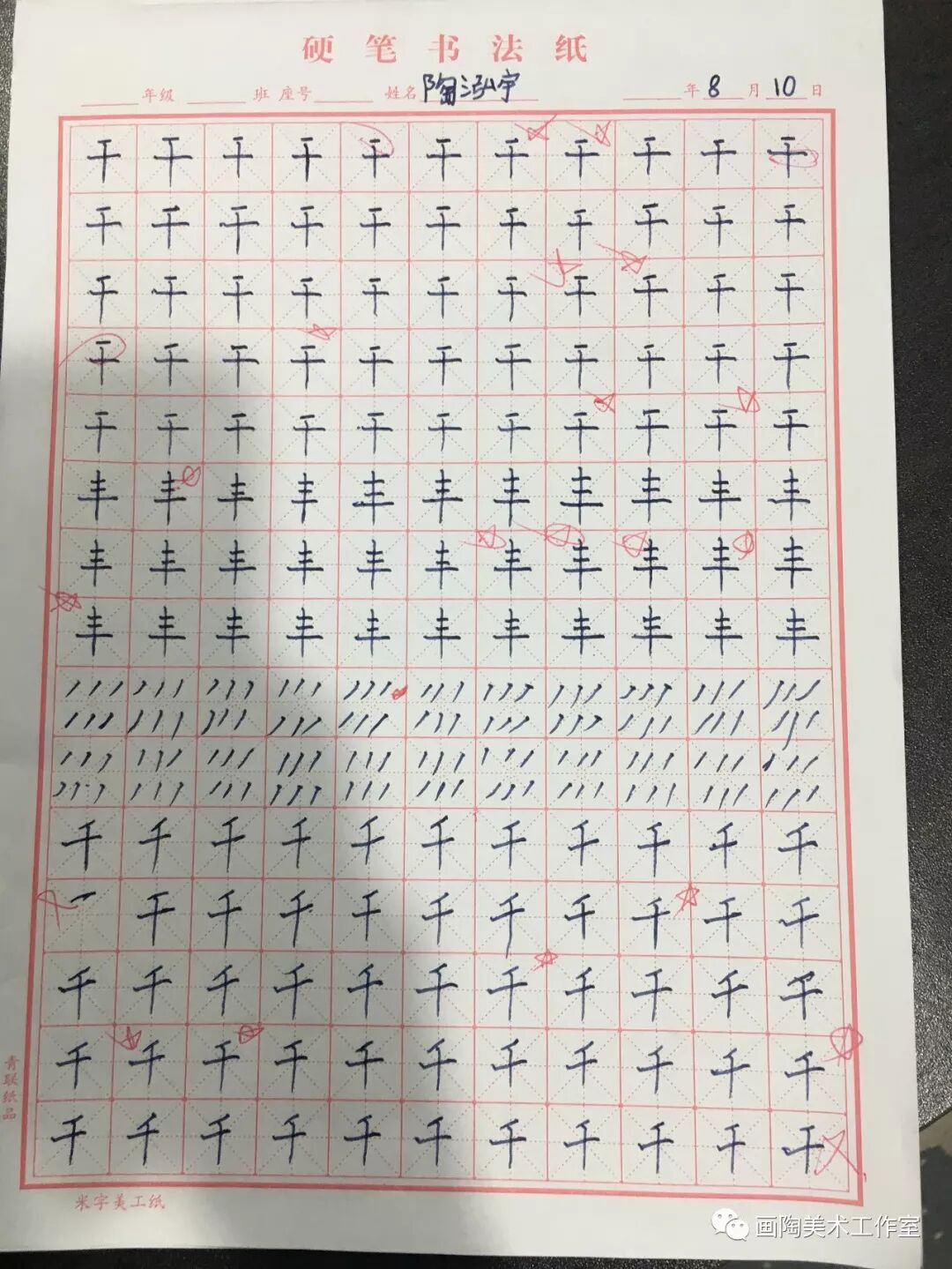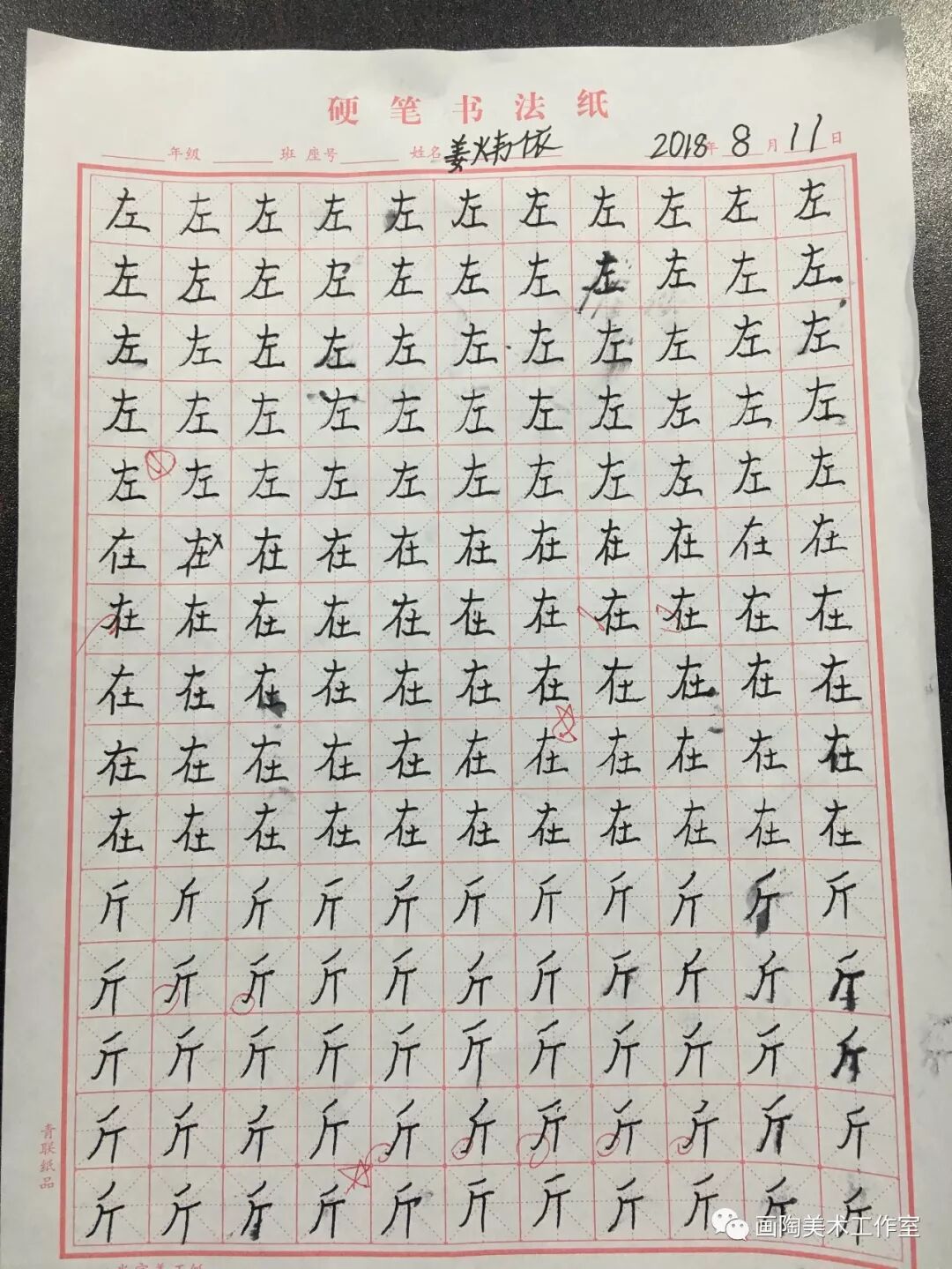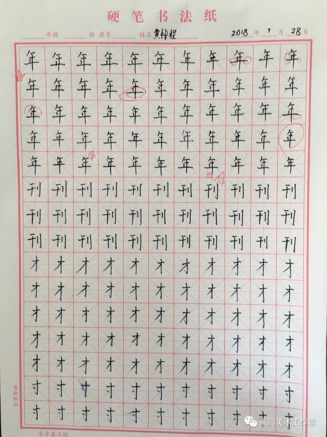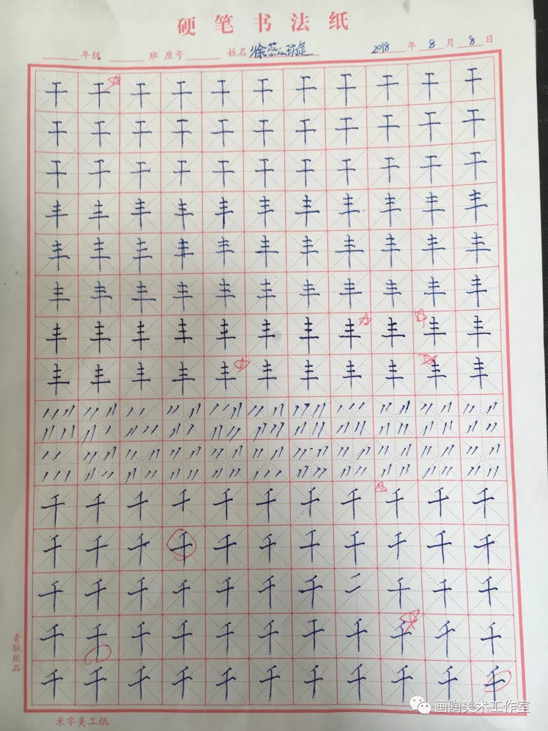 王睿刚起步,手抖得很厉害,但是男孩子中我很看好他,第二节课已经能悟出笔画的方法,多写写会好。