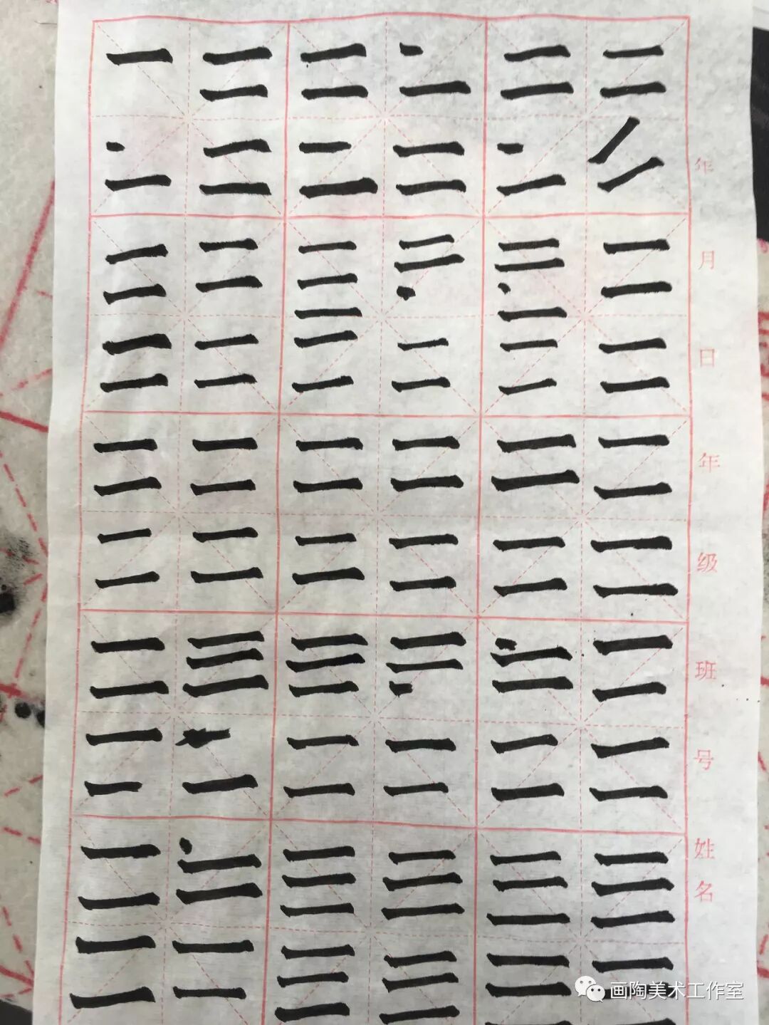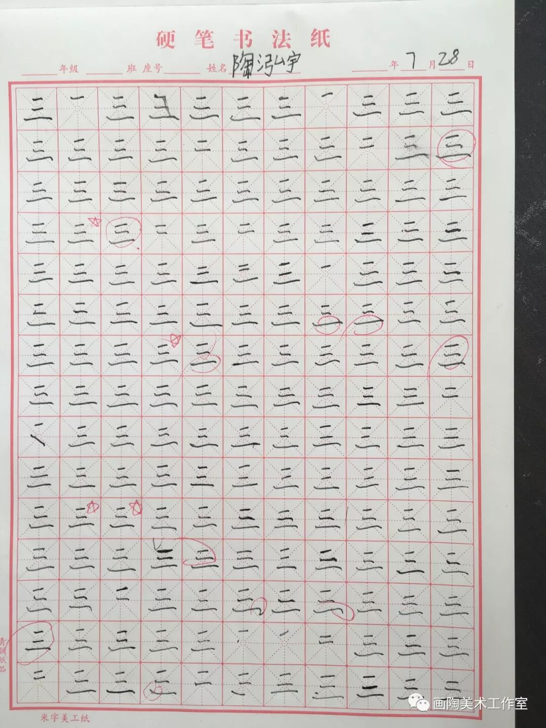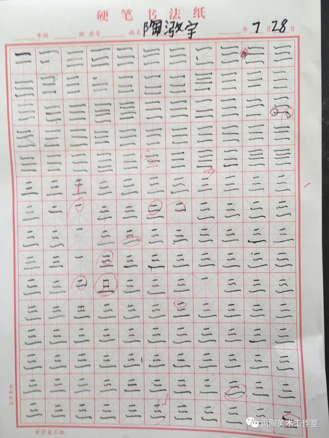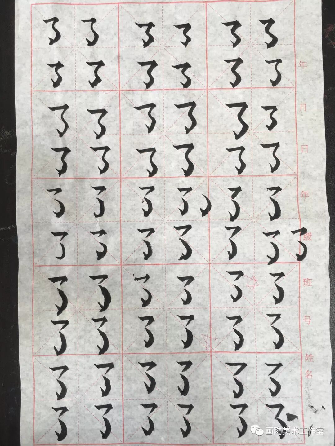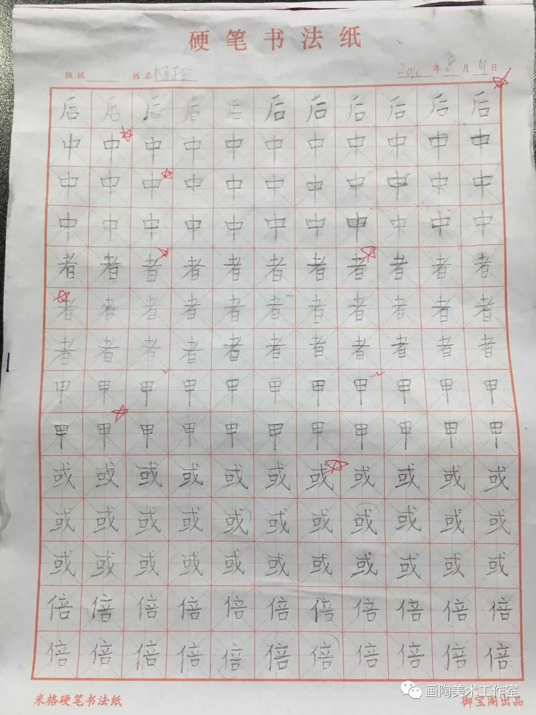 王睿刚起步,手抖得很厉害,但是男孩子中我很看好他,第二节课已经能悟出笔画的方法,多写写会好。