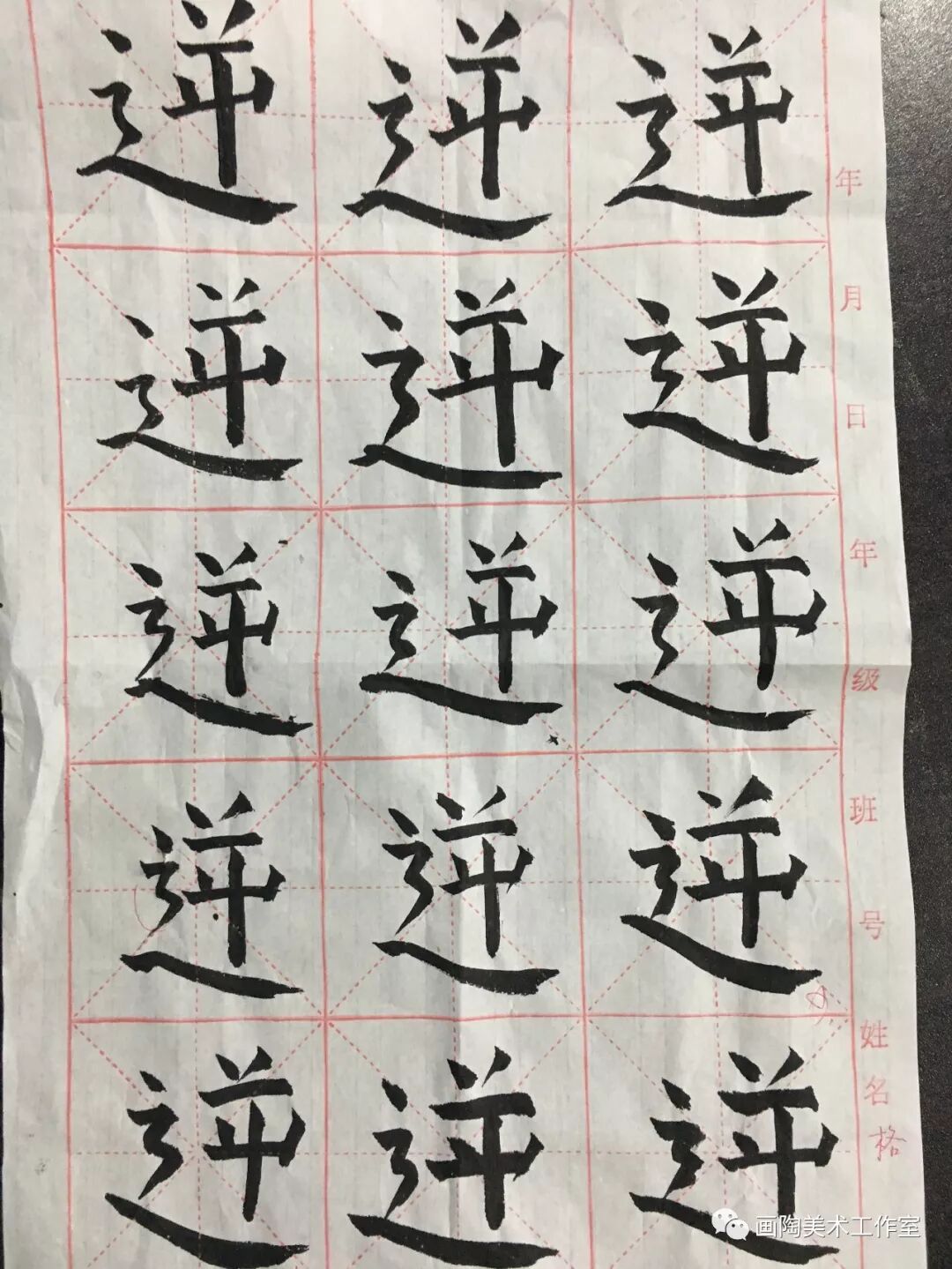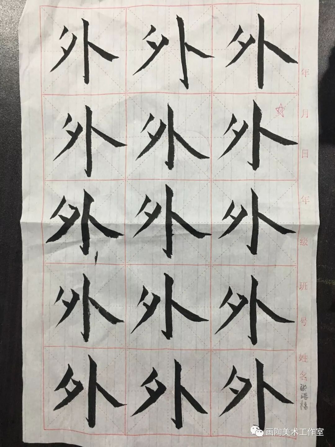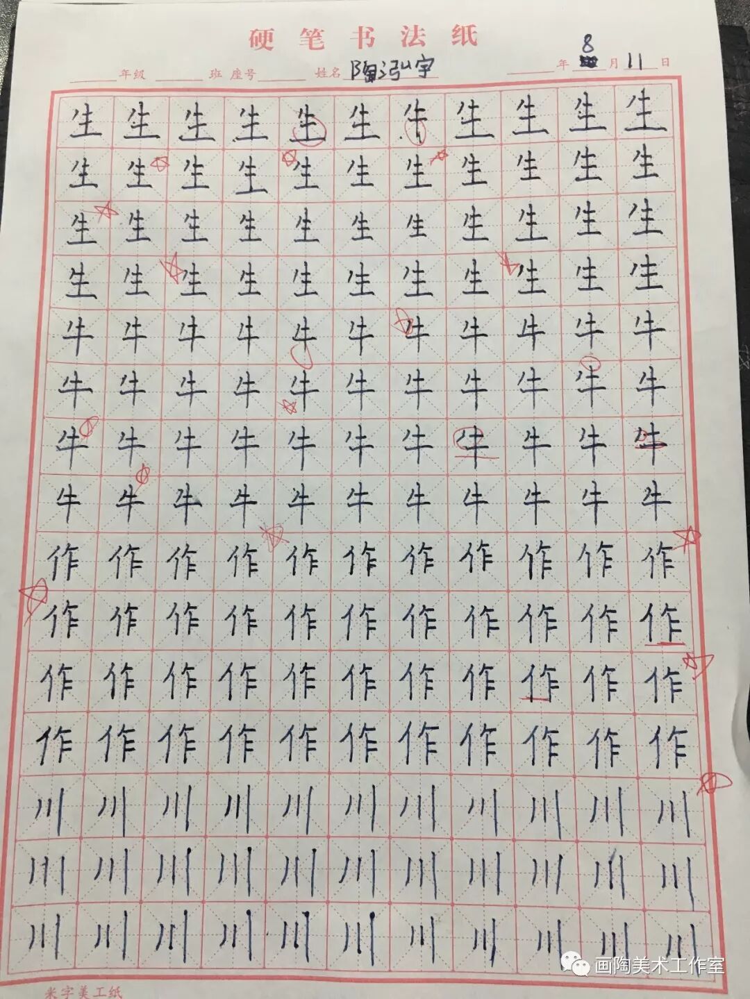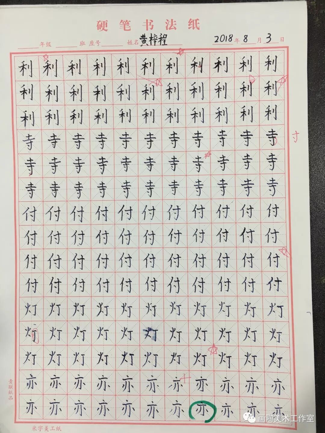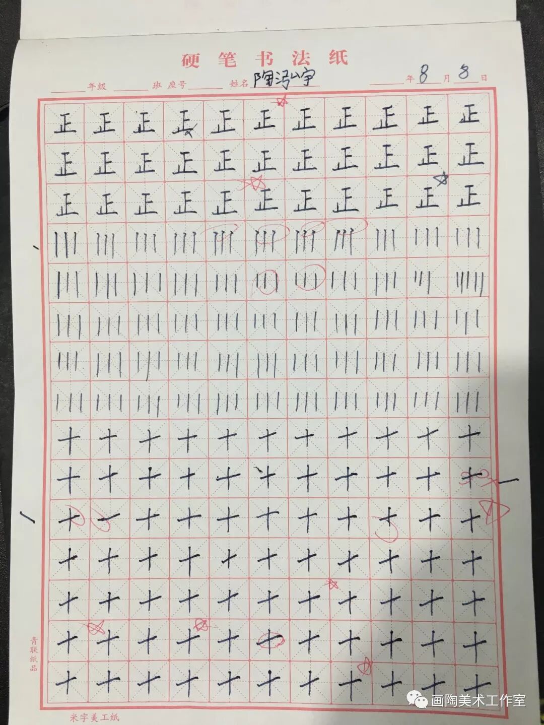王睿刚起步,手抖得很厉害,但是男孩子中我很看好他,第二节课已经能悟出笔画的方法,多写写会好。