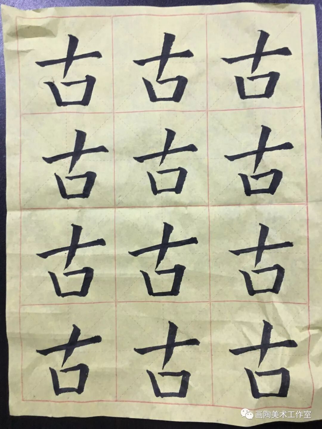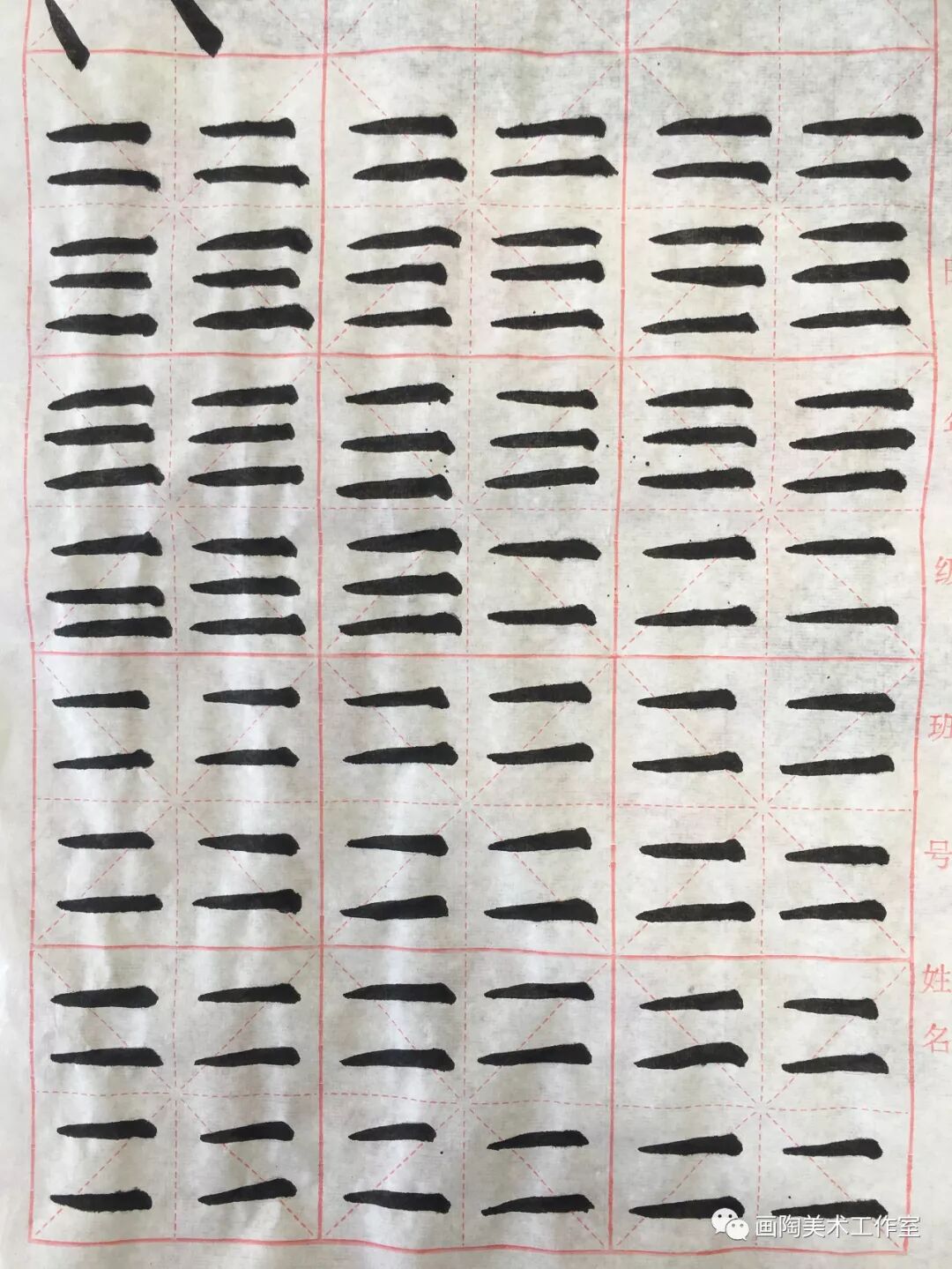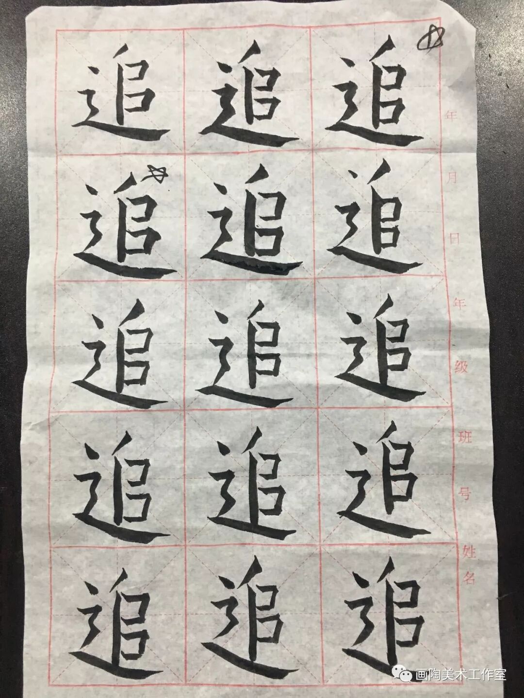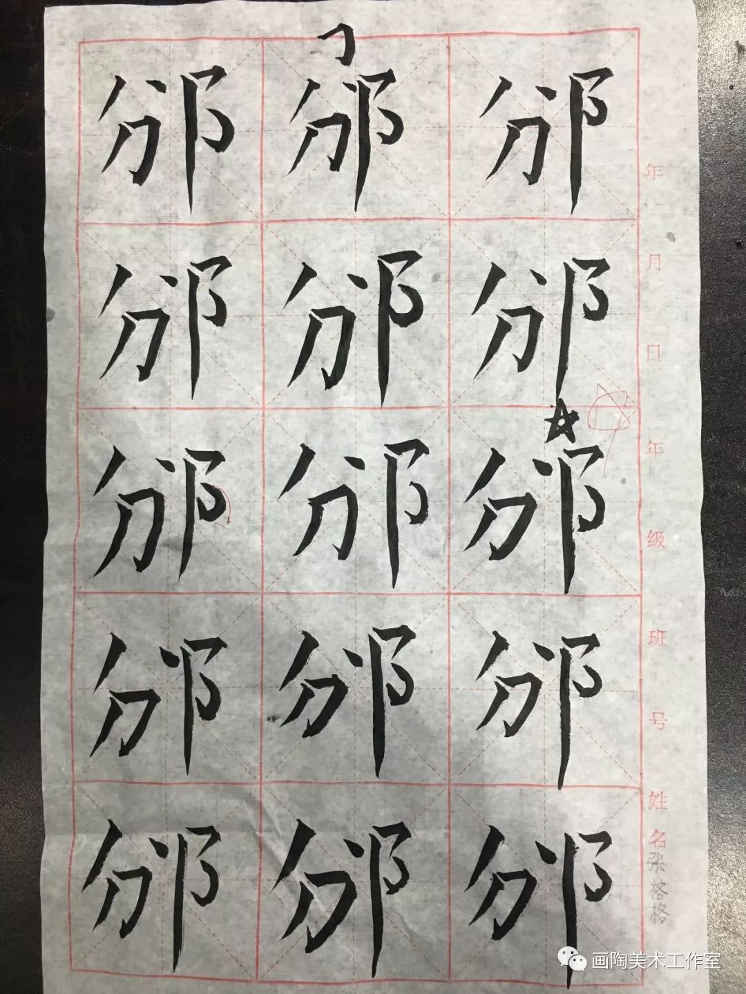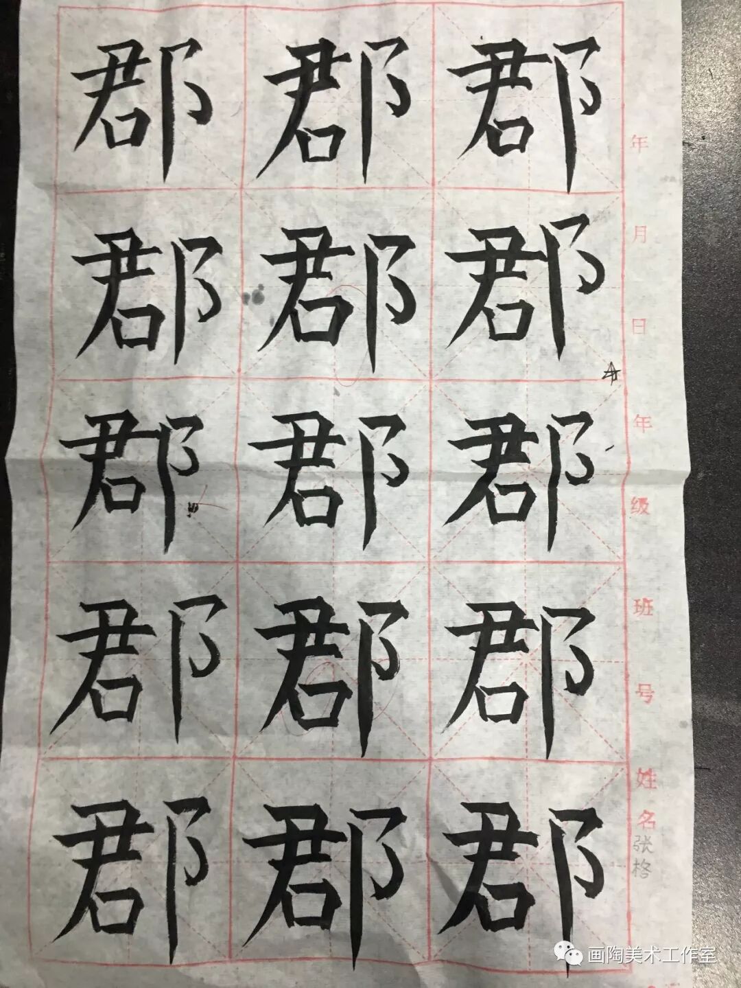王睿刚起步,手抖得很厉害,但是男孩子中我很看好他,第二节课已经能悟出笔画的方法,多写写会好。