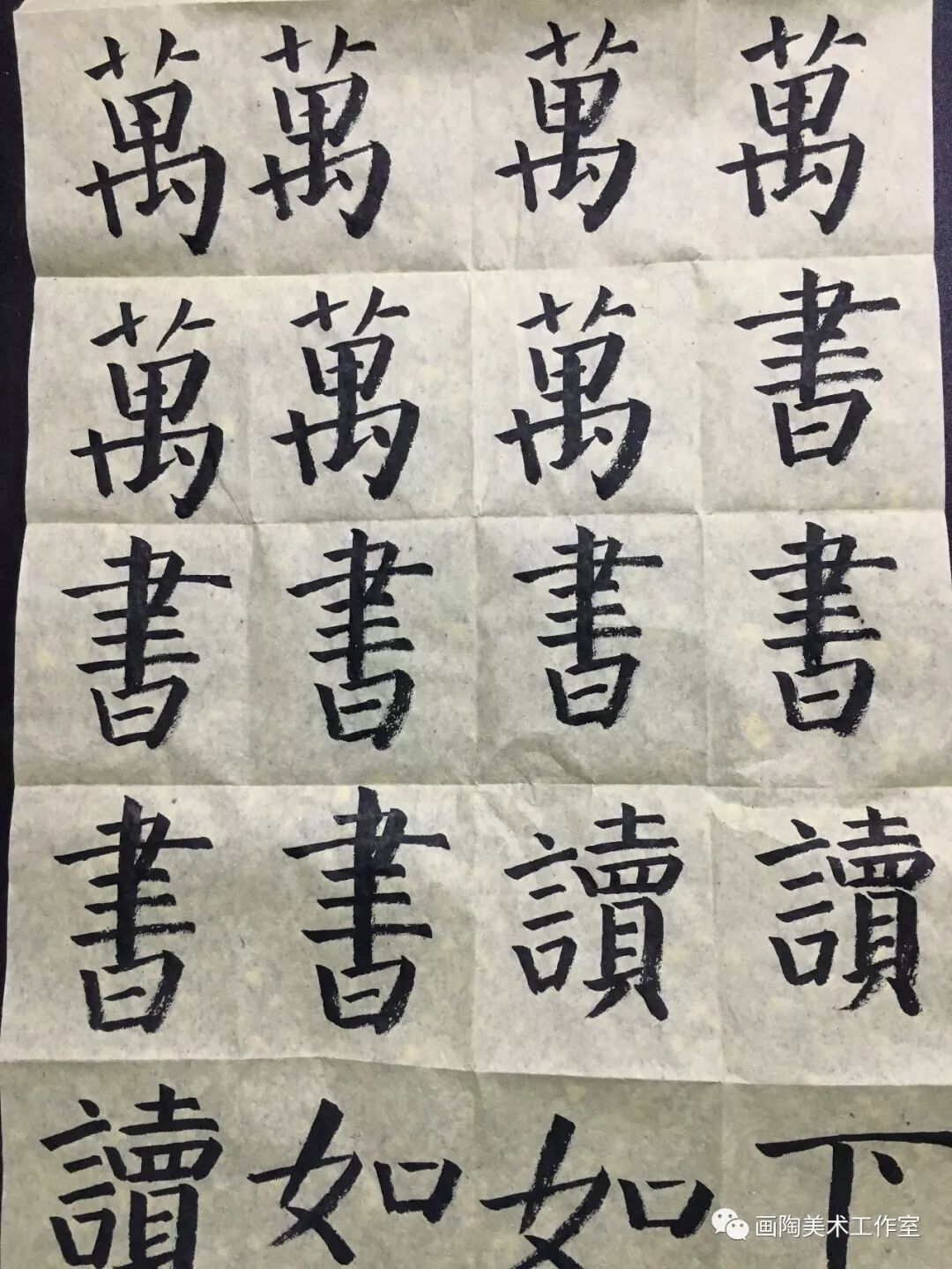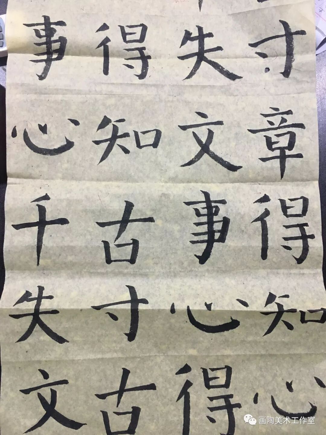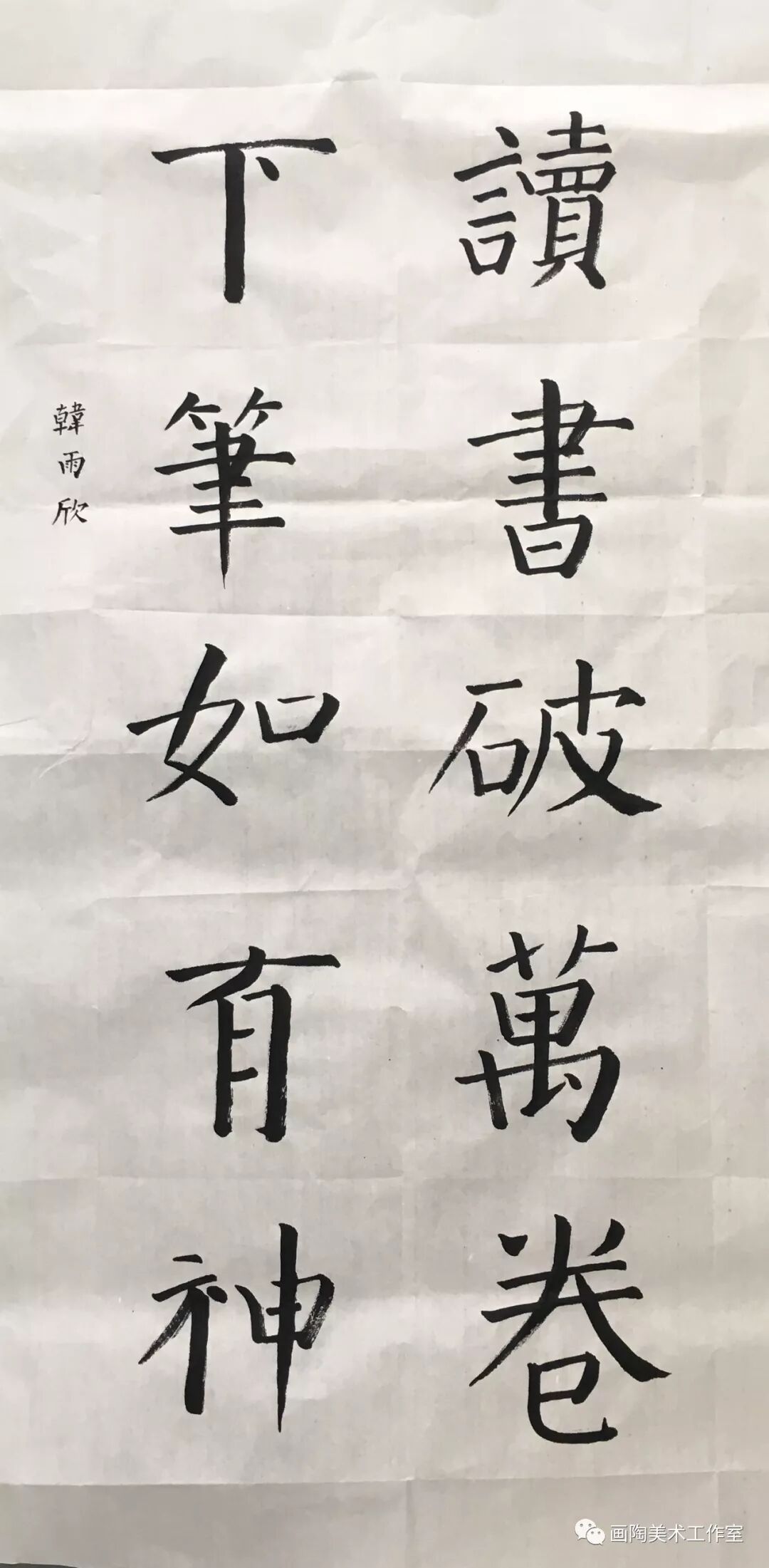 第一个是韩雨欣,完成了人生第一幅大作,虽然字型大小、个别字的结构把控能力上有所欠缺,但是基本功真的很不错了。她的身上体现的是一步一个脚印,楷体的基础很重要,不然写什么都经不起细看。