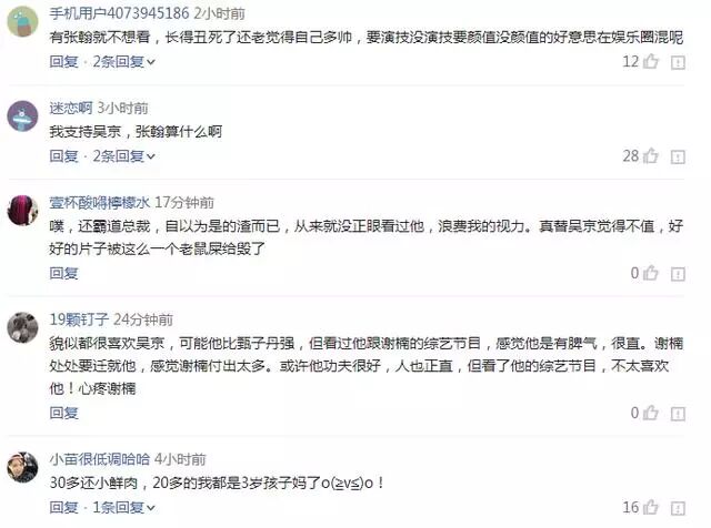 有网友说:记得有一次吴京接受记者采访的时候说过,因为拍戏需要坦克,所以需要去学习驾驶坦克跟保养坦克,但是同剧组的小鲜肉说没时间,要赶着拍别的戏! 所以吴京对剧组的小鲜肉有很大的意见。