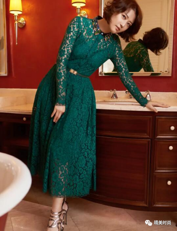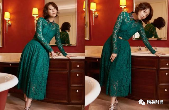 很少穿性感连衣裙的姐姐这次也选了一件透视蕾丝的连衣裙。正如你所看到的,她有一种模糊的视觉感,白皙的皮肤和充满女性魅力。其次,为了避免风格的单一,她还加入了小翻领设计,成熟又性感。与以往保守的着装相比,周海媚这次像变了一个人,穿着高跟鞋踩着绷带,露出半个小腿。