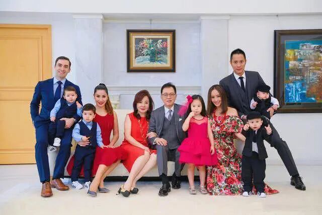 ▲右侧是关颖一家,左边是妹妹一家,中间是父母