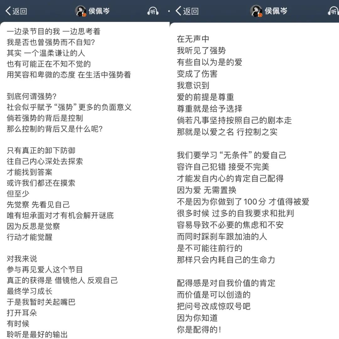 几期节目看下来,能看出,侯佩岑还是带入了很多自己的真情实感。
