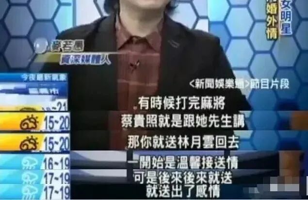 据说林月云怀孕后,候世宏怕她寂寞,便打牌介绍蔡贵照与她为伴,两人成为闺蜜。
