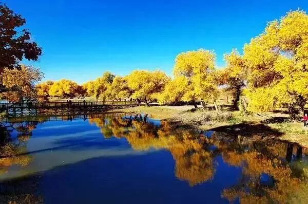 每到10月,大批游人纷至沓来,尽情地在这片广袤的胡杨的金黄世界里徜徉。