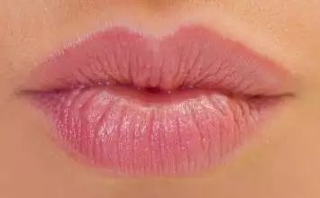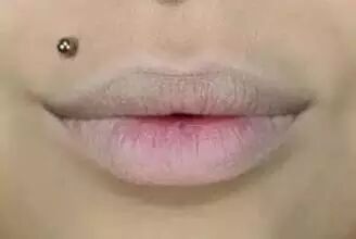 5、在下唇的中间处用唇笔刷沾取一点带珠光的白色或米色眼影,丰唇立即完成。
