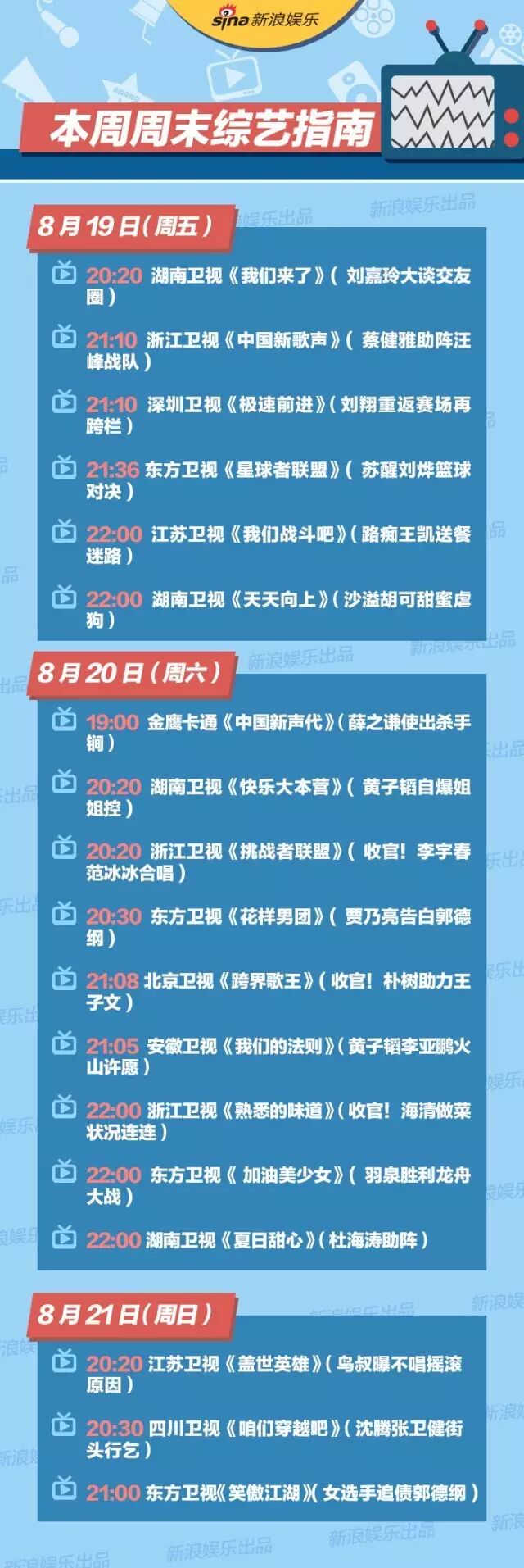 周末十几档综艺节目看不过来!君君在此剧透……喜欢哪一款,认准时间自己选!