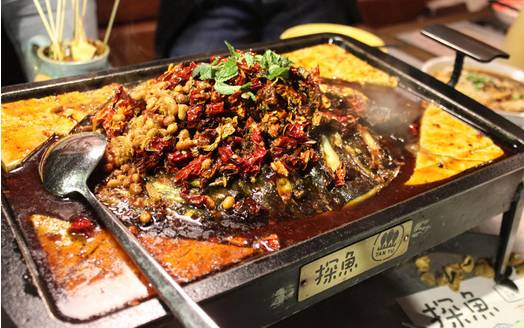据说探鱼是长沙最文艺的烤鱼店,情调十足。推荐他们家的重庆豆花烤鱼,每条鱼都在2斤半左右,肉质鲜嫩,分量足,鱼和豆花都超好吃。汤里尝起来带有一股淡淡的薄荷清香,口感十分有特色。