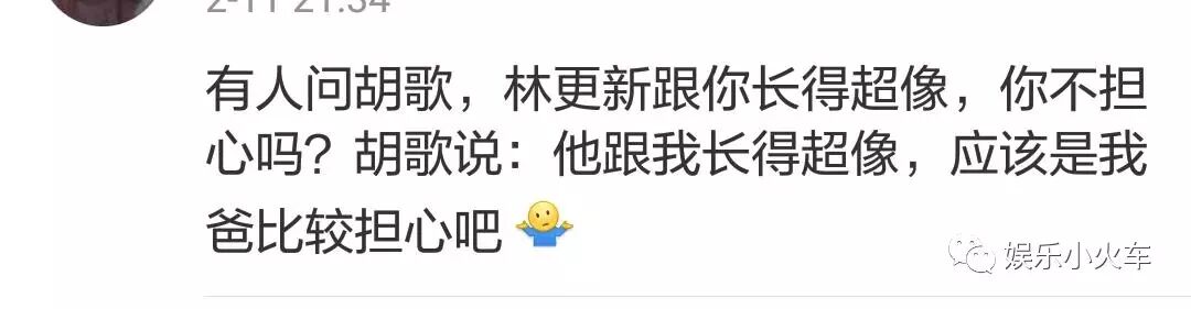 然后就有问胡歌:林更新长的和你超像,你不担心吗?胡歌说,他和我像,应该是我爸比较担心吧!wuli胡歌这脑回路就是厉害!
