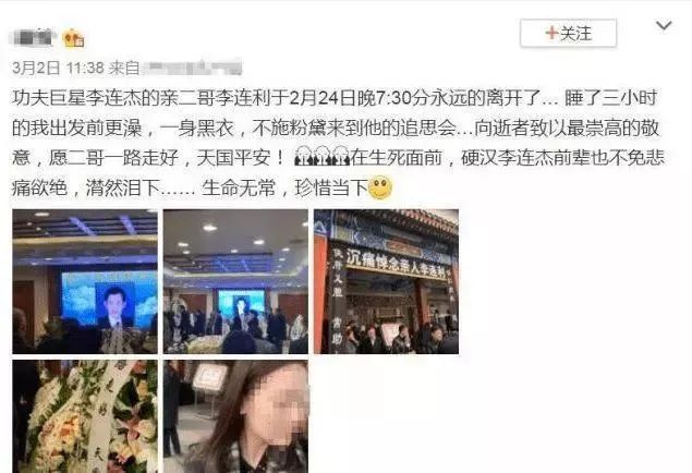 3月4日,李连利的葬礼在八宝山举行,李连杰亲自到场送自己哥哥最后一程。