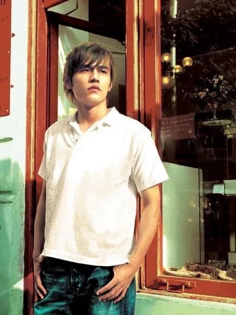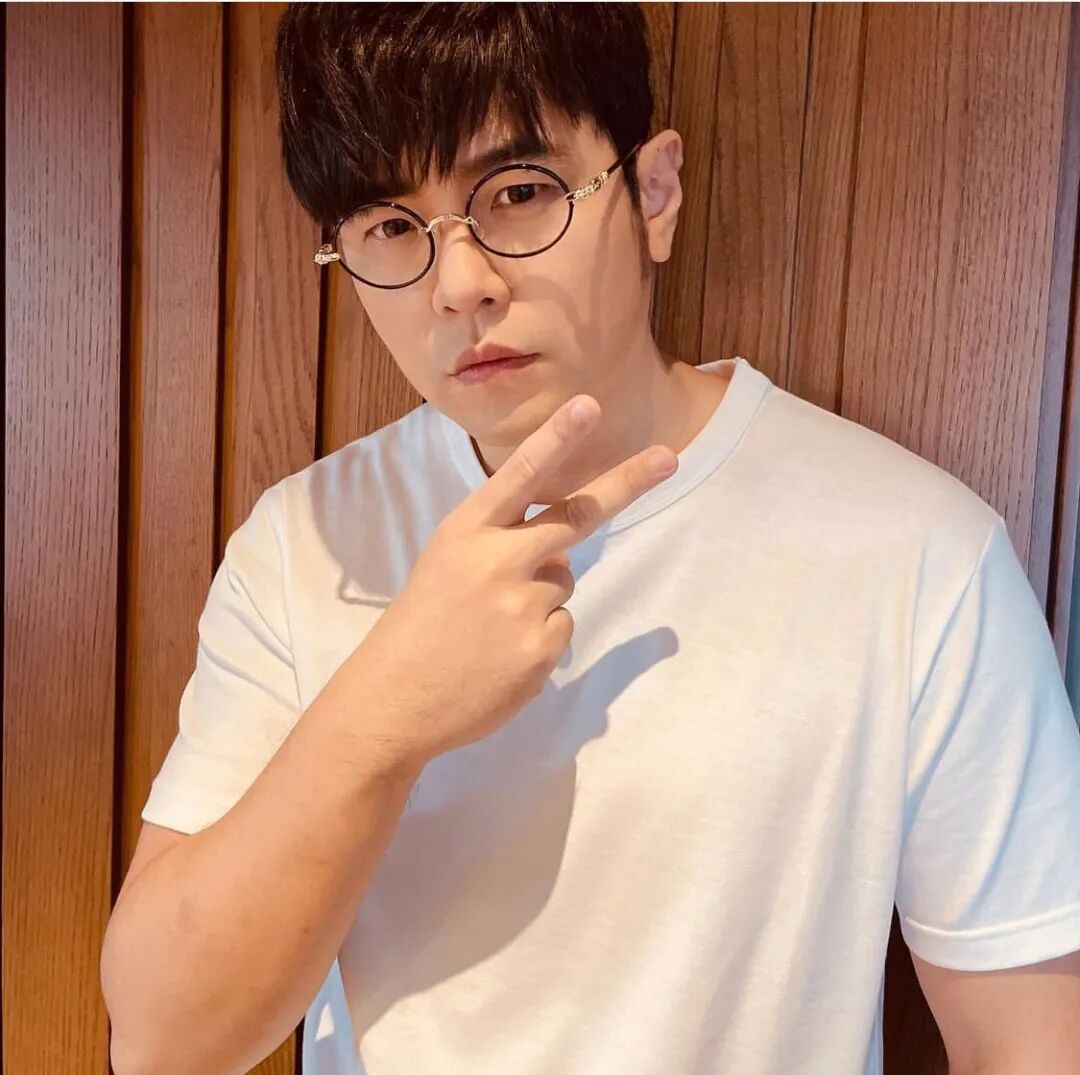 一副斯斯文文的的黑框眼镜,一件干净清爽的白T,就连标志性的络腮胡也剃干净了,仿佛一下子年轻了20多岁。