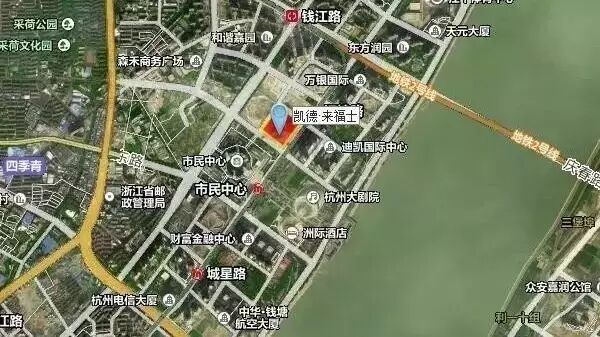 杭州来福士位于钱江新城核心区,与地标建筑市民中心、国际会议中心、杭州大剧院仅一路之隔。除了与钱江新城中心商业区的主要道路相连之外,杭州来福士还与地铁四号线“市民中心站”和“江锦路站”地下通道连接。