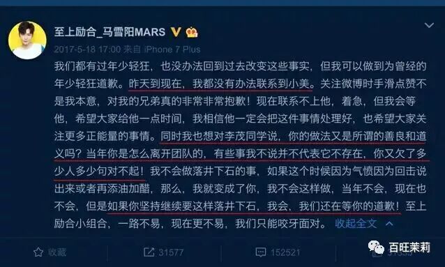 上面说到李茂退团,这事儿貌似也和马雪阳有关系