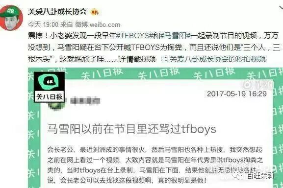 组合内的事情咱不知道,但最后说的两件事倒是有迹可循,有爆料说马雪阳以前在节目里骂过TFboys