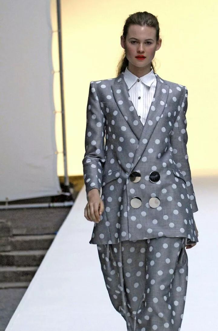 T台上的她,风格可以是超越年龄的成熟。原来当她不扮鬼脸,带着一本正经的肃穆神情向你走来,竟会有端庄冷静的一面。