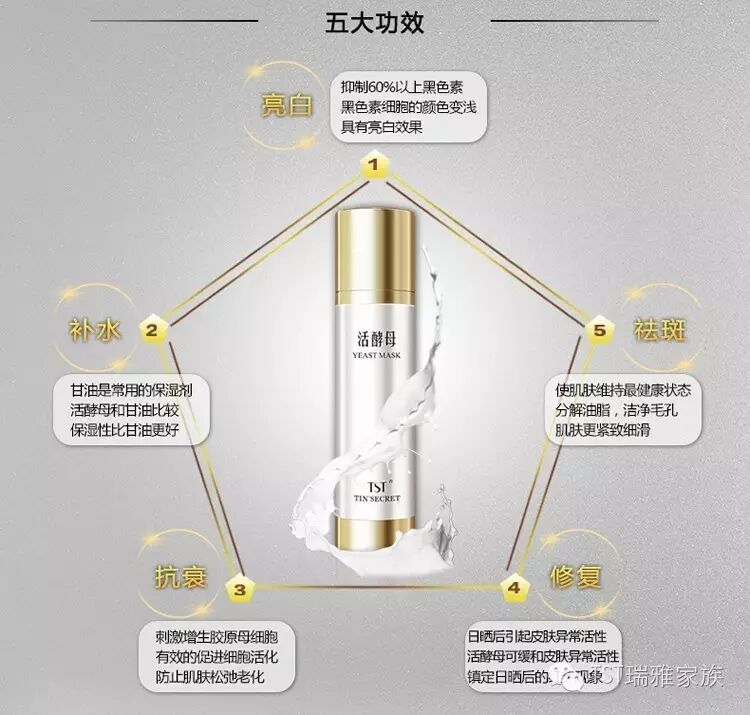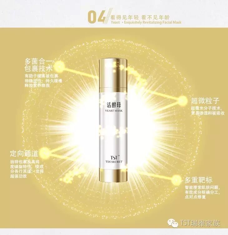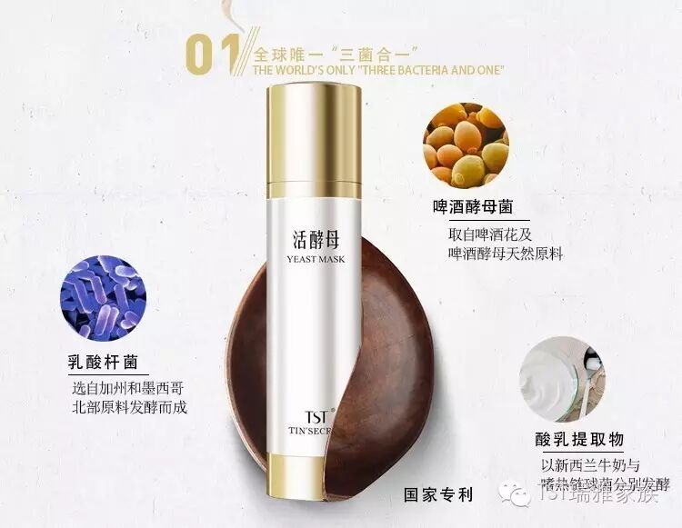 独特的活酵母含有丰富的活性物质,能让肌肤产生活化,提高细胞呼吸能力,促进细胞增生,增强细胞活力。同时,也能促进与皱纹形成有关的蛋白--胶原蛋白及弹性蛋白合成,具有平滑肌肤、淡化皱纹的功效;真正活酵母具有重要的美容价值。