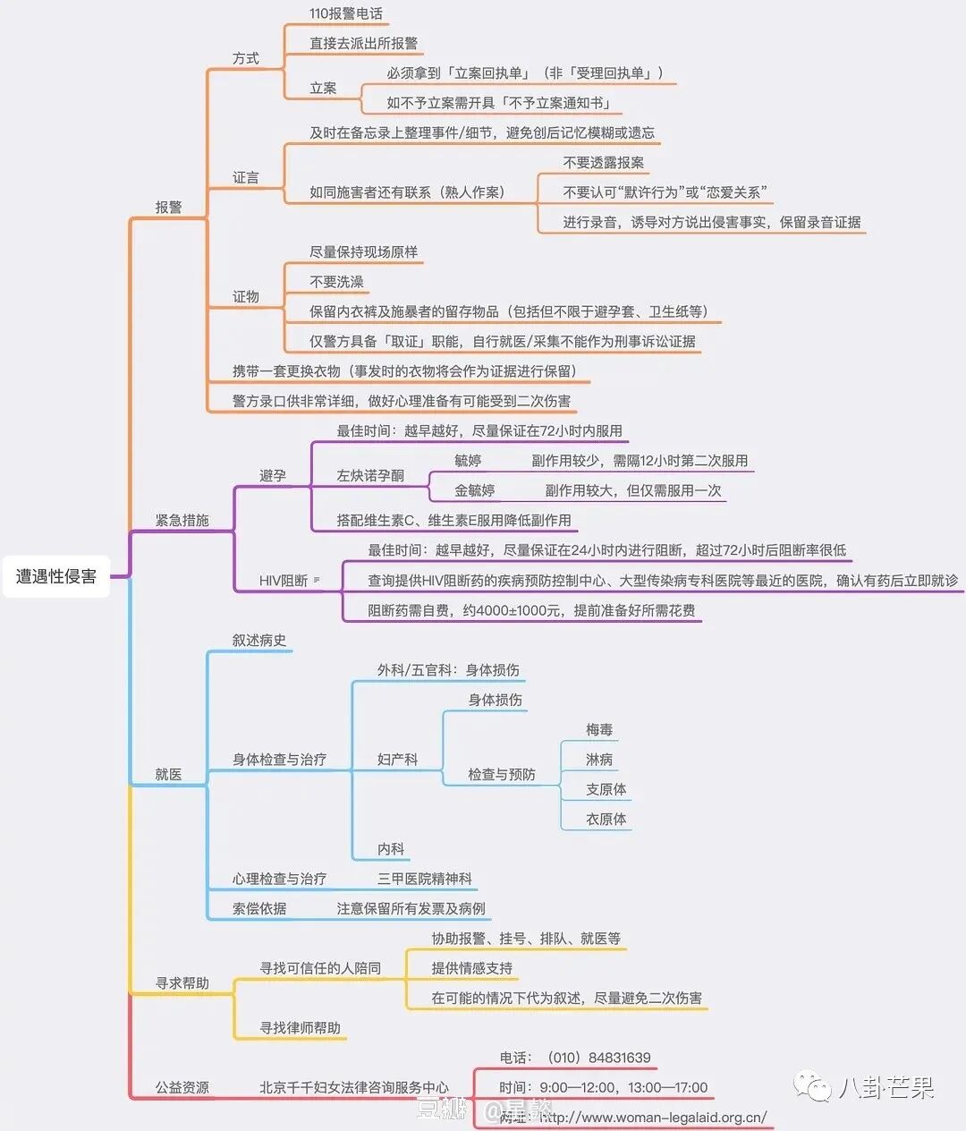 科普一下,希望大家永远用不着的【遭遇性侵后,该怎么做】流程图↓