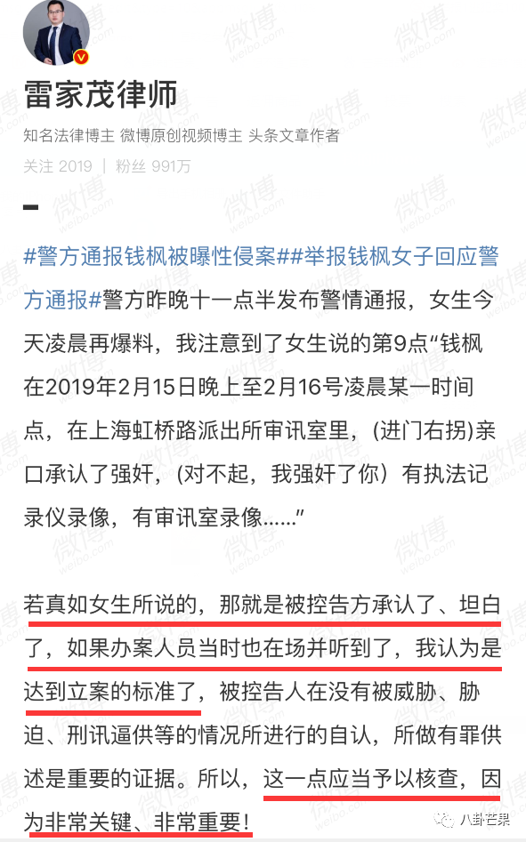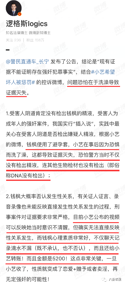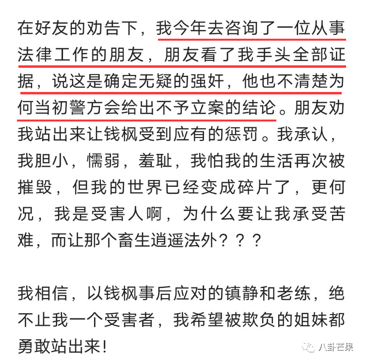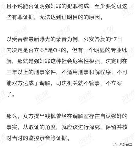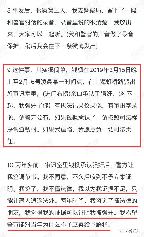 首先,如果正如小艺所说,【钱枫亲口承认过强奸】,警方还不立案,这恰当吗?