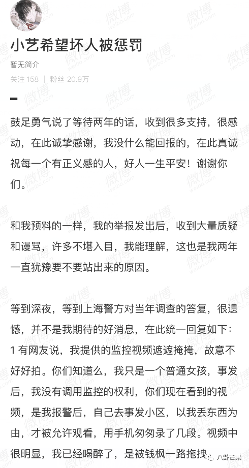最后,小艺响应警方通报里说的,“如果有新增证据,可向警方提供”,她说天亮就报案。所以我们拭目以待最后的结果吧。