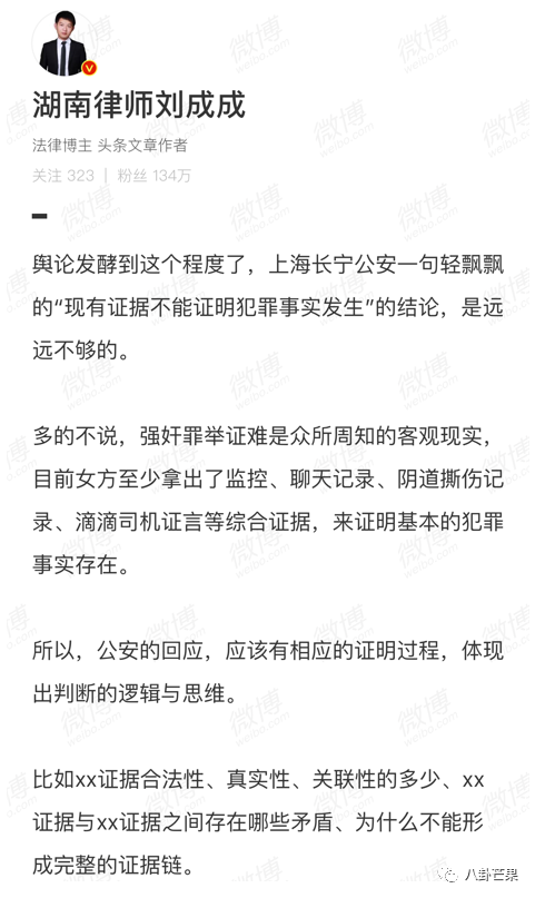 ↓这位律师说到,通报里轻飘飘的一句【现有证据不能证明犯罪事实发生】是远远不够的。女方拿出了那么多证据,警方也应该拿出完整的证据链,体现出判断的逻辑和思维。(或许是昨晚事发突然时间太紧?正在整理?相信很快会有第二份通报的。)