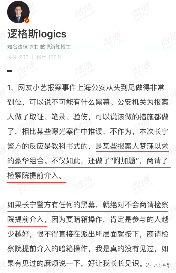 但是,很多人揪着小艺文里的“没有了下文”,觉得她带节奏污蔑警方,说“反转了”。其实,仔细想想,她想要的结果是“立案审查”,“坏人得到惩罚”,最后得到“不予立案”,这对她来说就是“没有下文”了,这可以理解吧?而且她也在文里写了“不知道为什么警方做出不予立案的决定”,她并没有隐瞒这个结果。而且,警情通报恰恰证明了她真的报警了,验伤了。