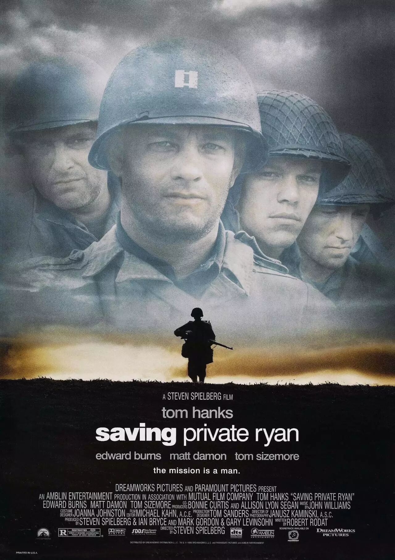 影片前半段是对历史的宏观重述,电影开场是奥马哈海滩之役的经典场面,冷静残酷的现实主义手法,可谓前无古人。仅仅用了开场后的23分钟,斯皮尔伯格创造了目前电影史上最残酷的诺曼底登陆,超过了前辈《最长的一天》。后半段的微观叙事,似乎转入了“美国理念”的宣讲,由汤姆·汉克斯领导的8名战士小分队奉命深入敌后,寻找失踪的普通士兵瑞恩,因为他的几位兄长都已阵亡,远在美国的老妈妈在等着他回家过圣诞节。为了拯救大兵瑞恩,小队全员牺牲。
