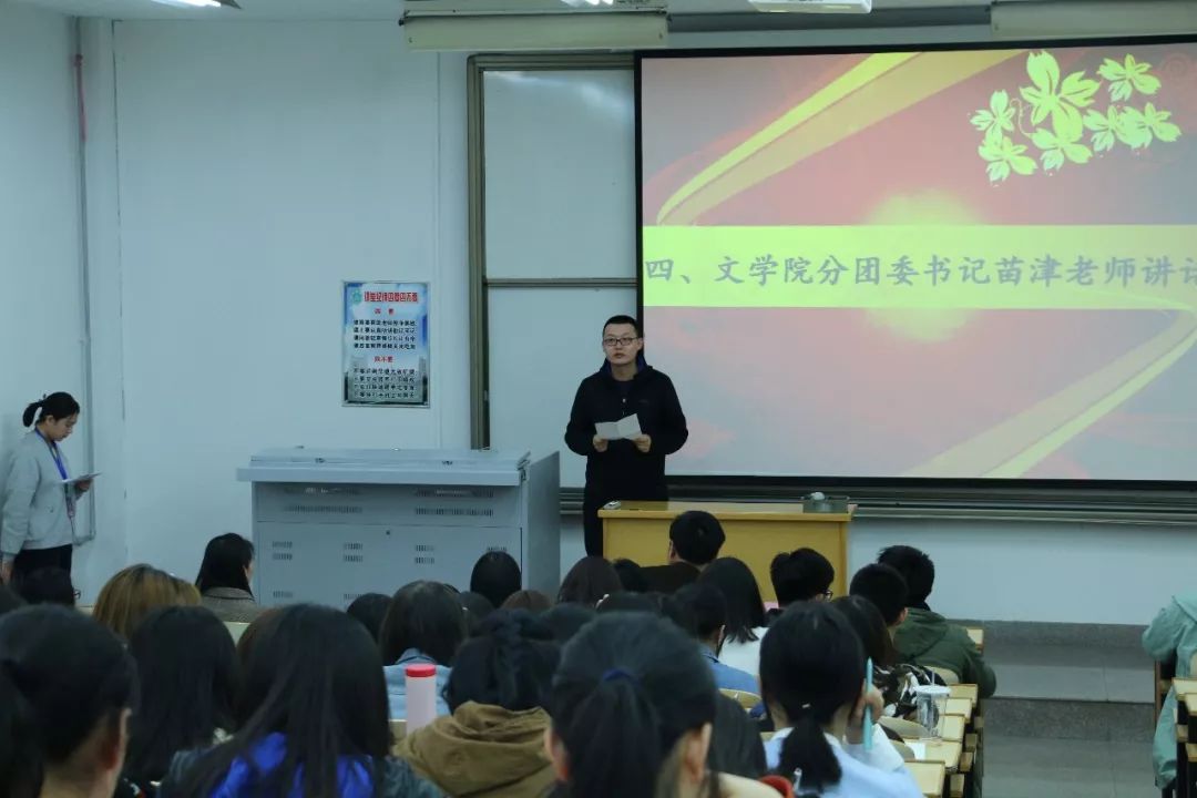接下来文学院分团委书记苗津老师进行了发言,对王书记的讲话进行了总结。
