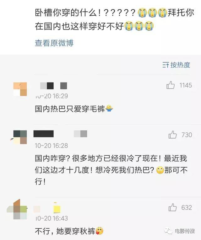 还有粉丝幽默评论,热巴在国内要穿毛裤。