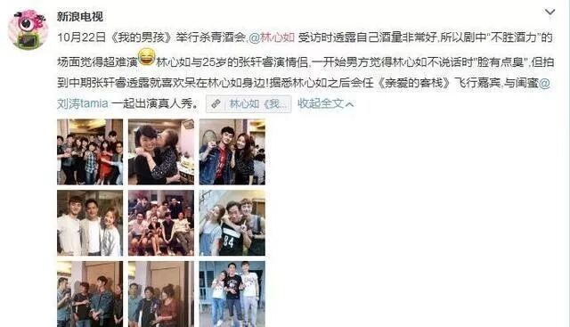 由林心如再度担任制作人和主演的新剧《我的男孩》杀青了,近日剧组举行了杀青酒会,林心如受访时透露自己酒量非常好,所以剧中“不胜酒力”的场面觉得超难演。