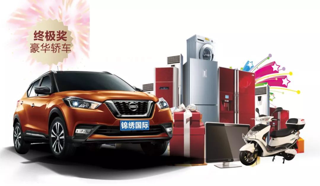 除此之外,还有千万豪礼,冰箱、洗衣机、液晶电视等等,而且有终极大奖:豪华汽车等您来拿!