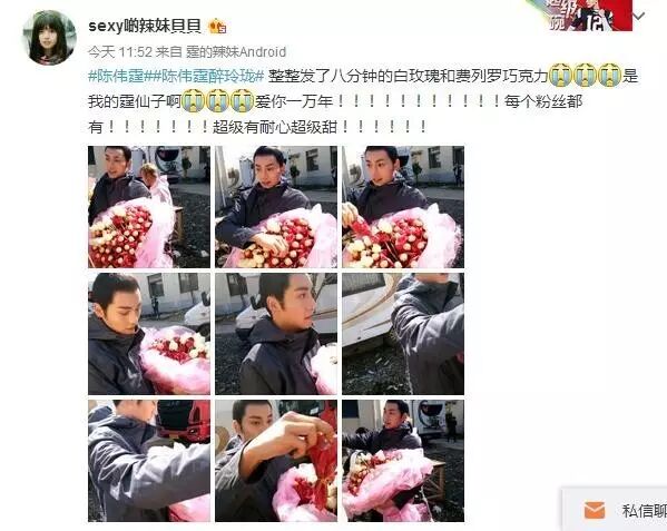 不过今天最让人暖心的是陈伟霆,这个行走的保温瓶暖男竟然在粉丝探班时,送玫瑰花和巧克力!