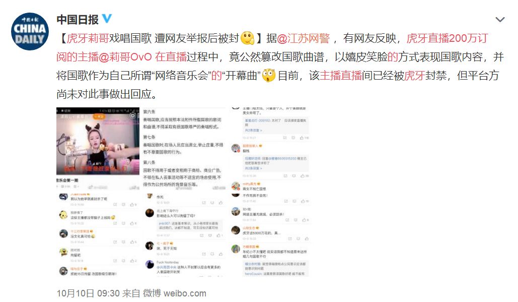 被举报后,虎牙平台立即封禁主播莉哥直播间,冻结主播莉哥直播账号,下架全部相关影像作品。其余平台也表示不会和她有任何合作可能。