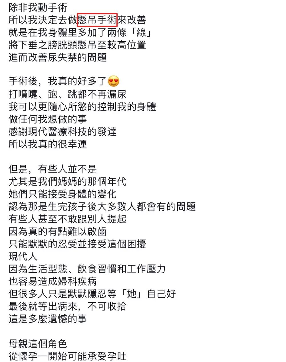 如果有较严重的子宫脱垂,有些医生会放置子宫托,或者像Ella这样只能做悬吊手术,才能解决问题。