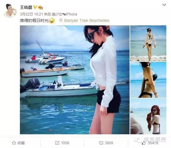 昨天上午,王晓晨在微博晒出一组海边度假美照,完美身材显露无遗!