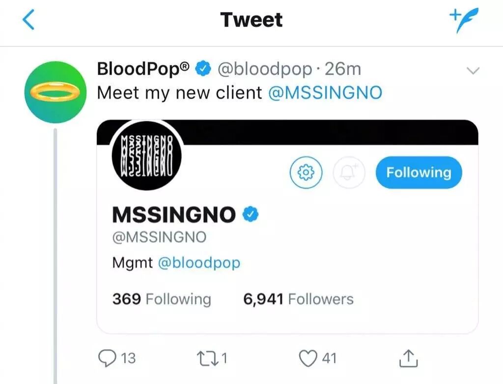 今天音乐人Bloodpop在推特转发宣传自己的小号,