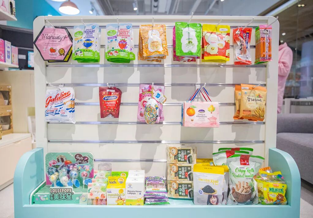 这里有不少宝宝们爱吃的小零食,包装可爱,也深受宝宝的喜欢,有些进店的宝宝直接就自己伸手去拿小零食,可见喜爱程度。
