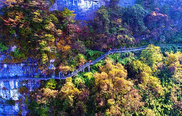 绝壁栈道,俯瞰秋姿