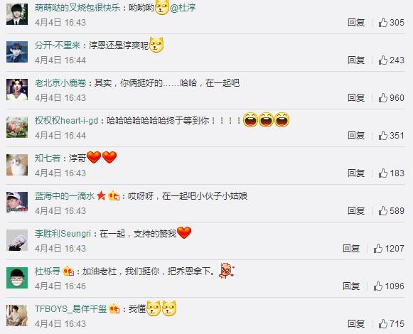甚至杜淳都对媒体直言在酝酿求婚方式了,突然发现,杨璐删除了2012年对杜淳的生日祝福,并且取消了对杜淳的关注,杜淳也删除了与杨璐的合影,同时取消关注,原因不得而知。