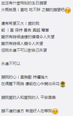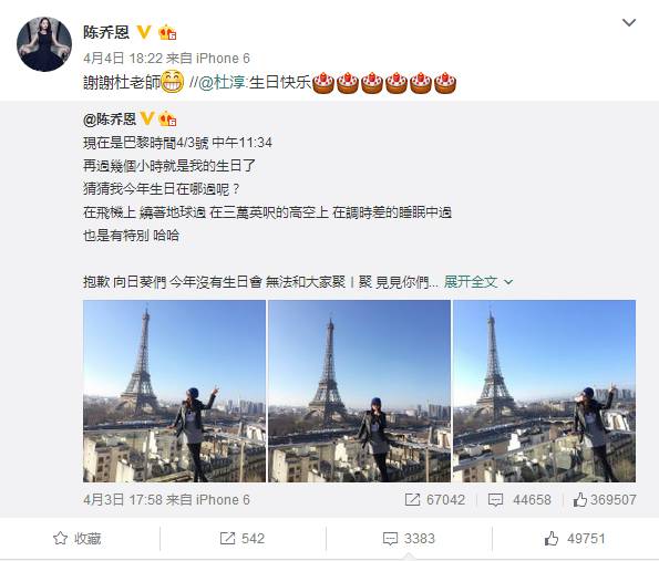 处在工作日程中的她在巴黎提前一天PO长文发表了一些感想。除了对粉丝的感谢,还有一系列生日愿望。