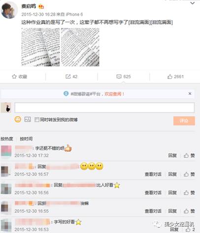然而就在一大片夸奖中,挖酱发现有一条“字比人好看”的评论,嗯,放到现在肯定活不过一刻钟,幸好来的早。